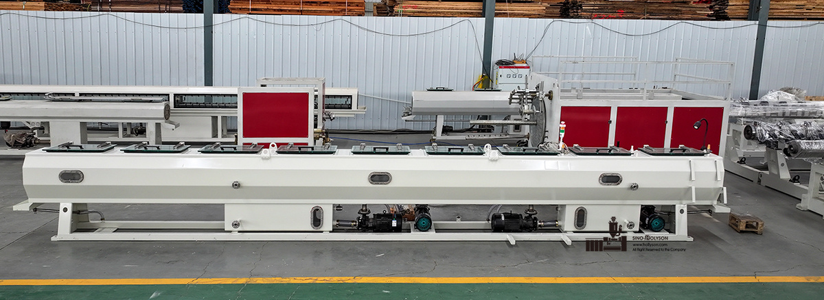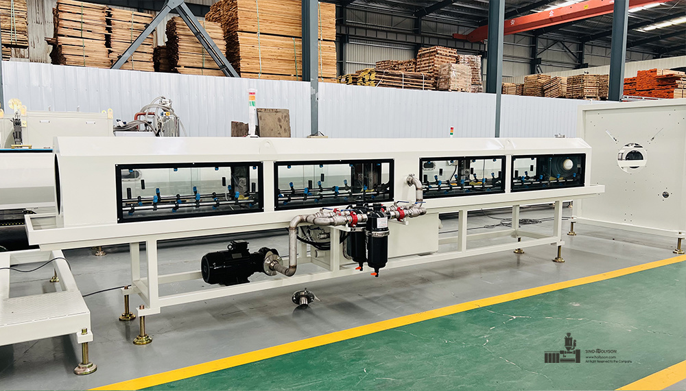 The mounted mould on this line is 75-250mm, full set of mould will include every detailed sized mandrel and sizing sleeve, for different DN/PN/SDR level pipe production. The moulds size, and pipe thickness are customized as per customer requirement.